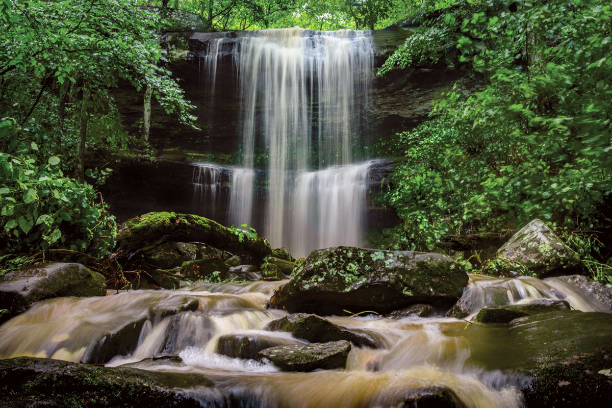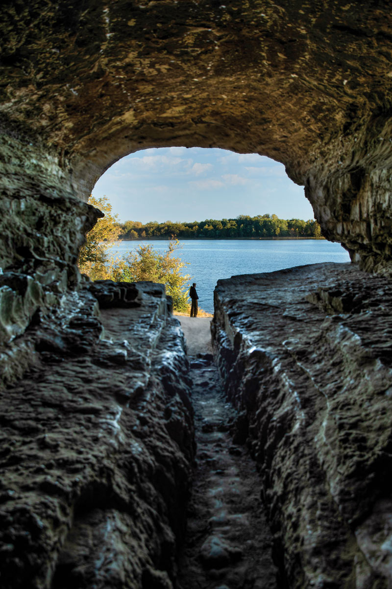 Along the Rocky Bluff Trail at Crab Orchard National Wildlife Refuge, hikers can find picturesque seasonal waterfalls cascading over layered rock ledges and an abundance of beautiful wildflowers in the spring. After rainfall or during spring melt, the falls come alive. The trail is a 2.2-mile loop near Devil’s Kitchen Lake.