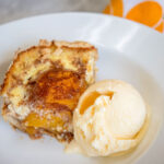 - Continue baking for 30 minutes. Serve warm with ice cream or half and half.