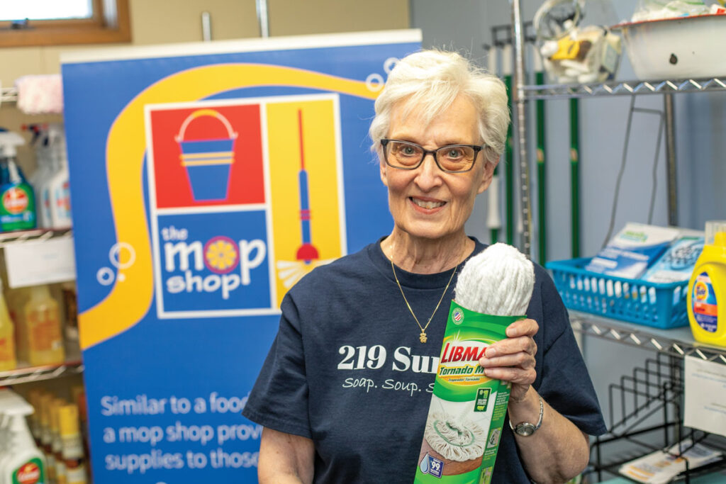 Jan Hoedebecke, a volunteer at The Mop Shop, was enamored of the concept when she first heard about it. “Making your home a warm and safe and welcoming place just means a lot,” she says. “You hear about food banks, and even though that’s still a tremendous need, this was a niche that just kind of spoke to me. I said, ‘This is something that we can really build upon, and I’d love to be a part of it.’